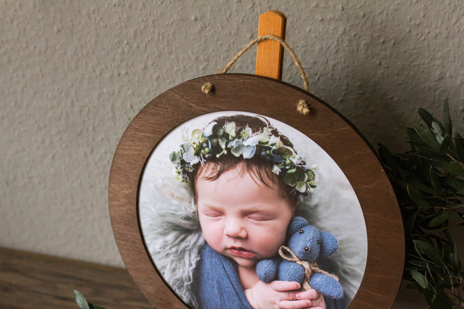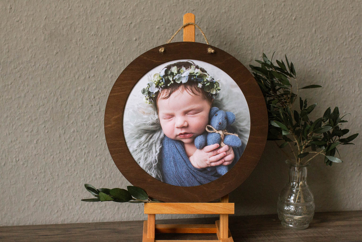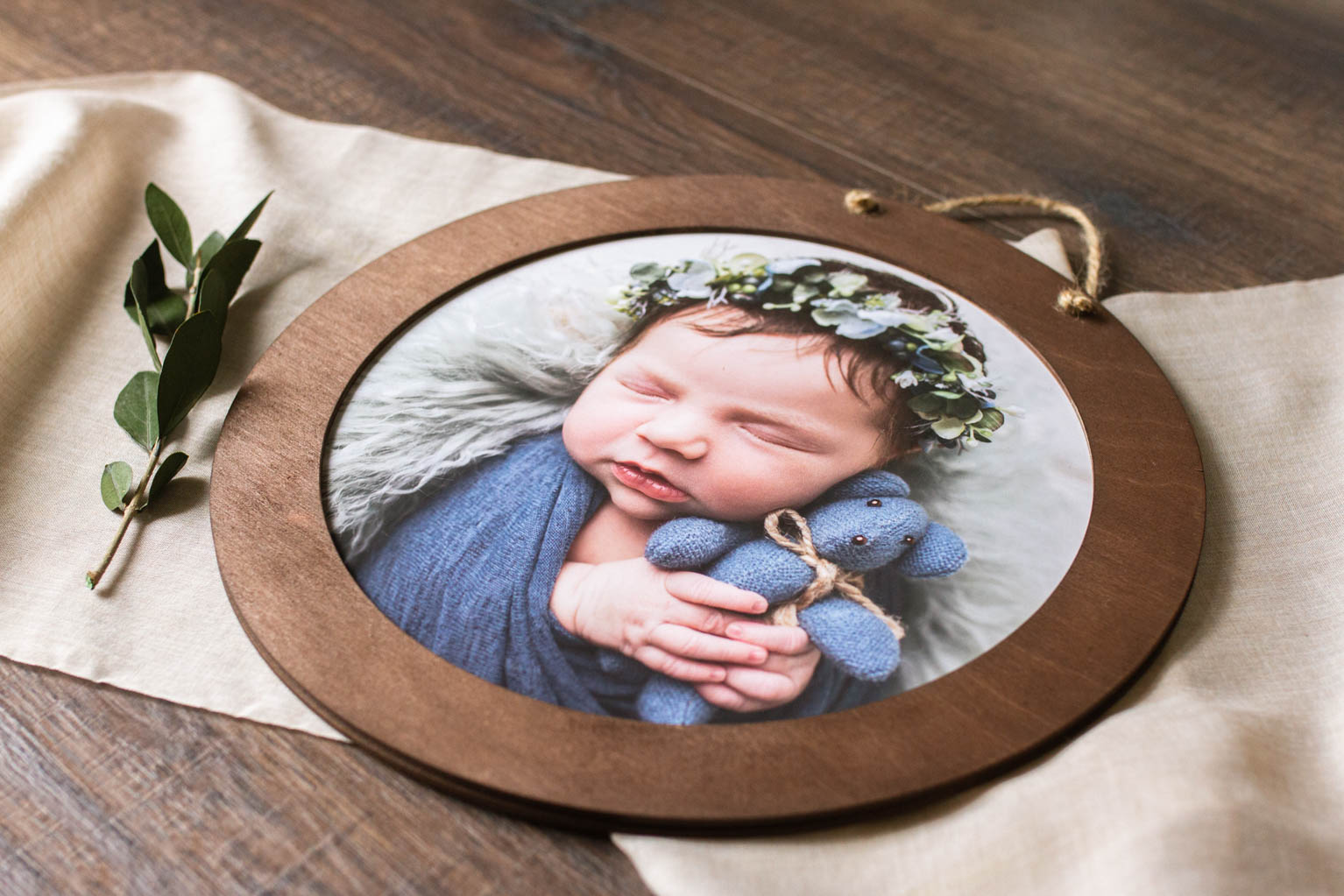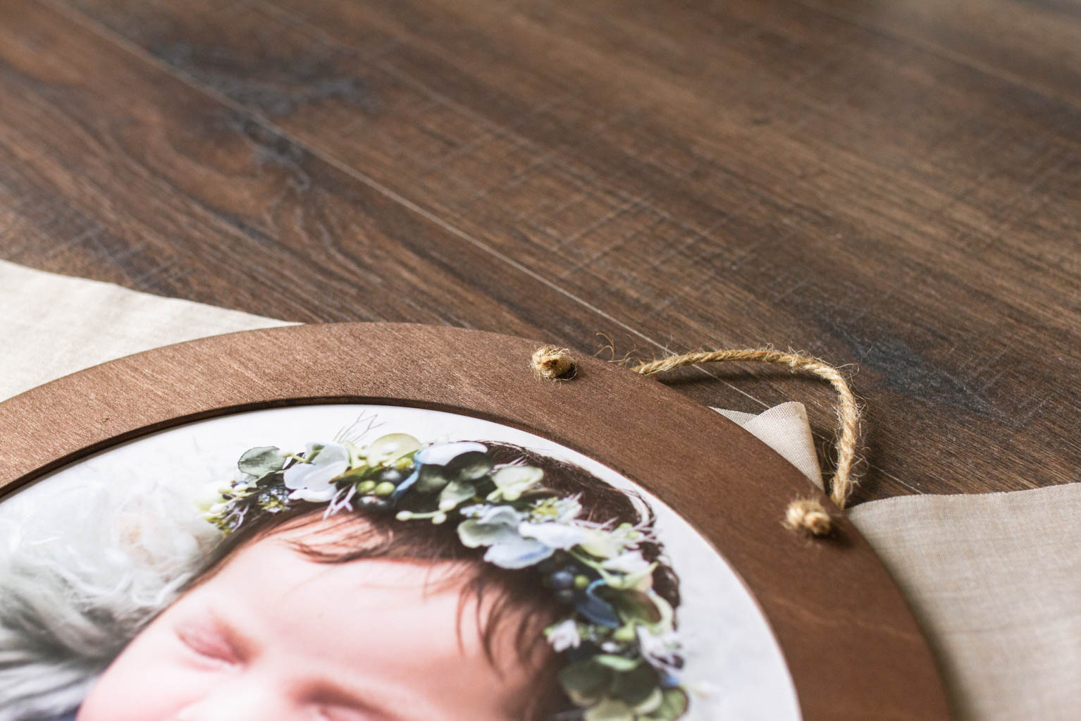 Bild: Holzfarbe dunkelbraun mit Kordel und das Foto ist aus Fotpapier matt
