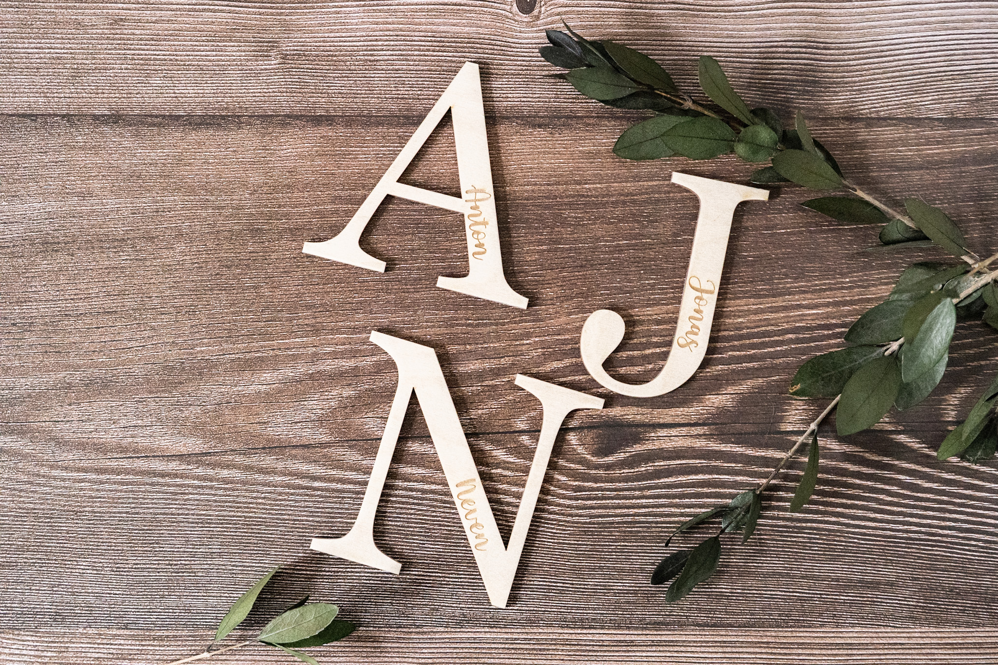 Dieser elegante Buchstabe wird aus hochwertigem Birkensperrholz gefertigt und mit einem Namen graviert. Ob als liebevolle Geschenkidee oder stilvolles Give-away für Hochzeiten, Geburtstagsfeiern und andere besondere Anlässe – dieser Buchstabe ist ein echter Hingucker.