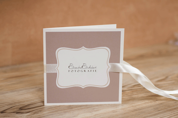 Wunderschöne handgemachte CD-Hülle mit Logodruck und Band. Diese Hülle wird aus Fotokarton in der Farbe perlweiß hergestellt. Sie gibt es vielen verschiedenen Farben und Bänder. Die Farbe ist der Aufdruck für den Hintergrund.
