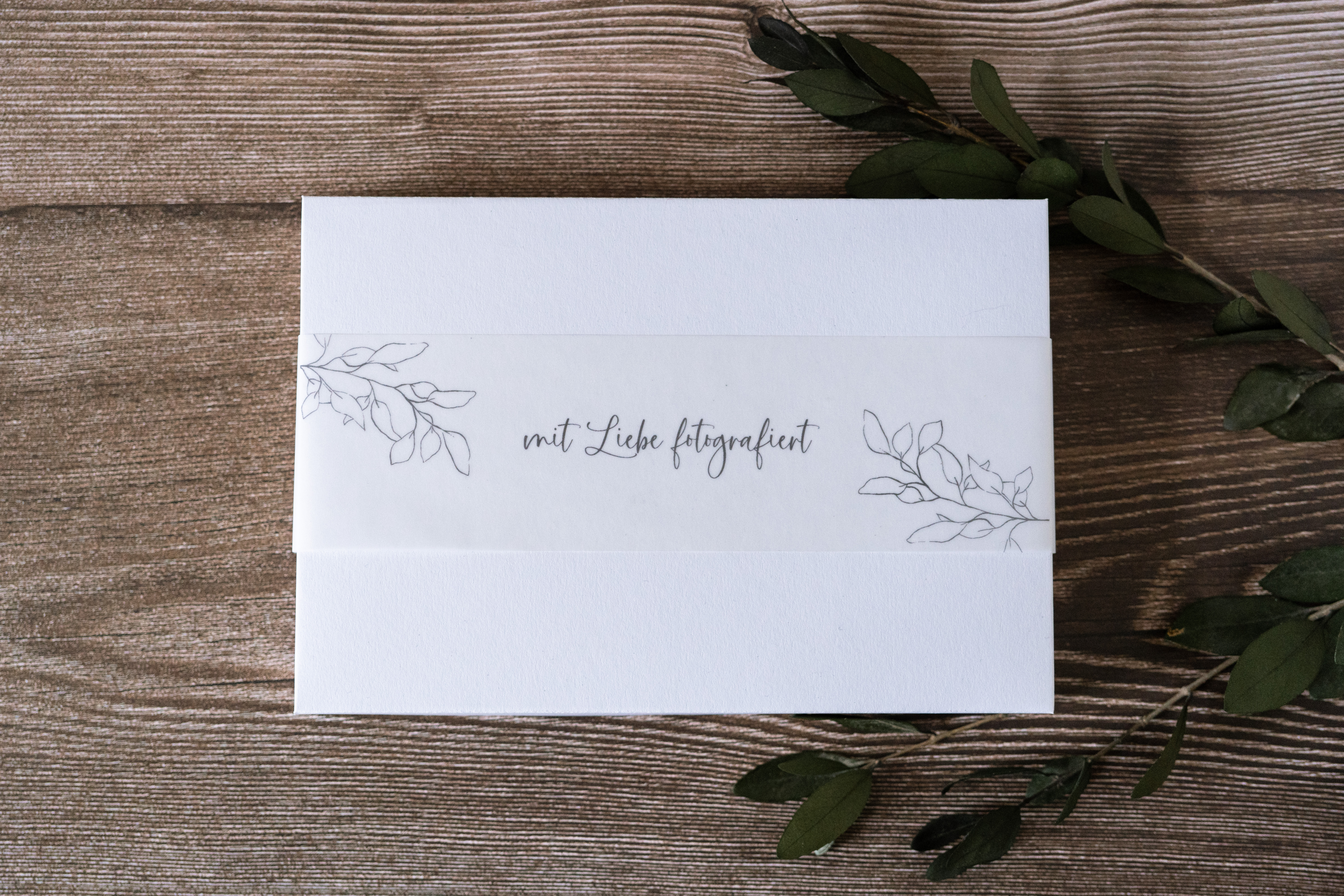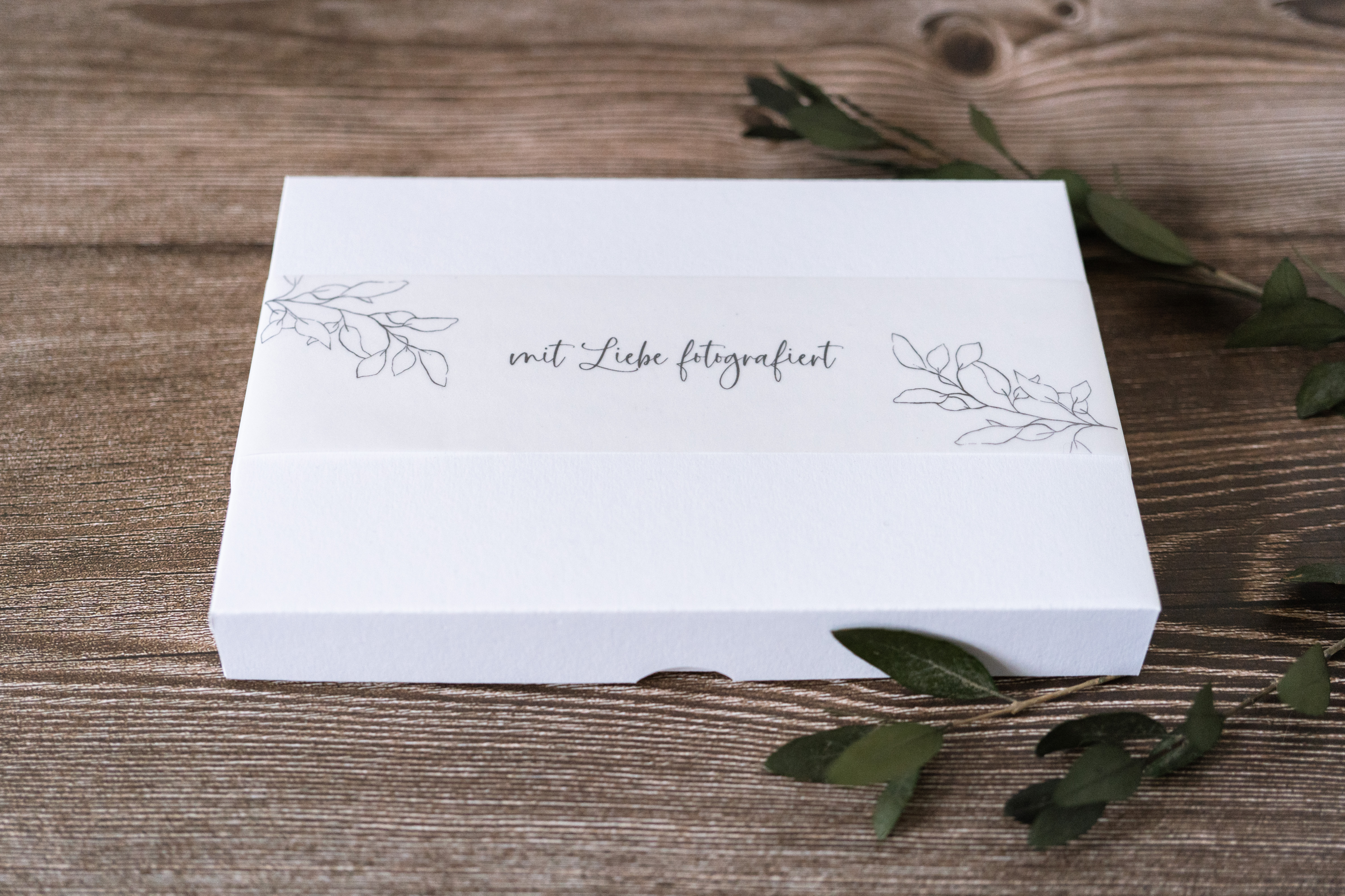 Wunderschöne Fotoschachtel mit Druck auf transparenten Papier oder Leinenpapier