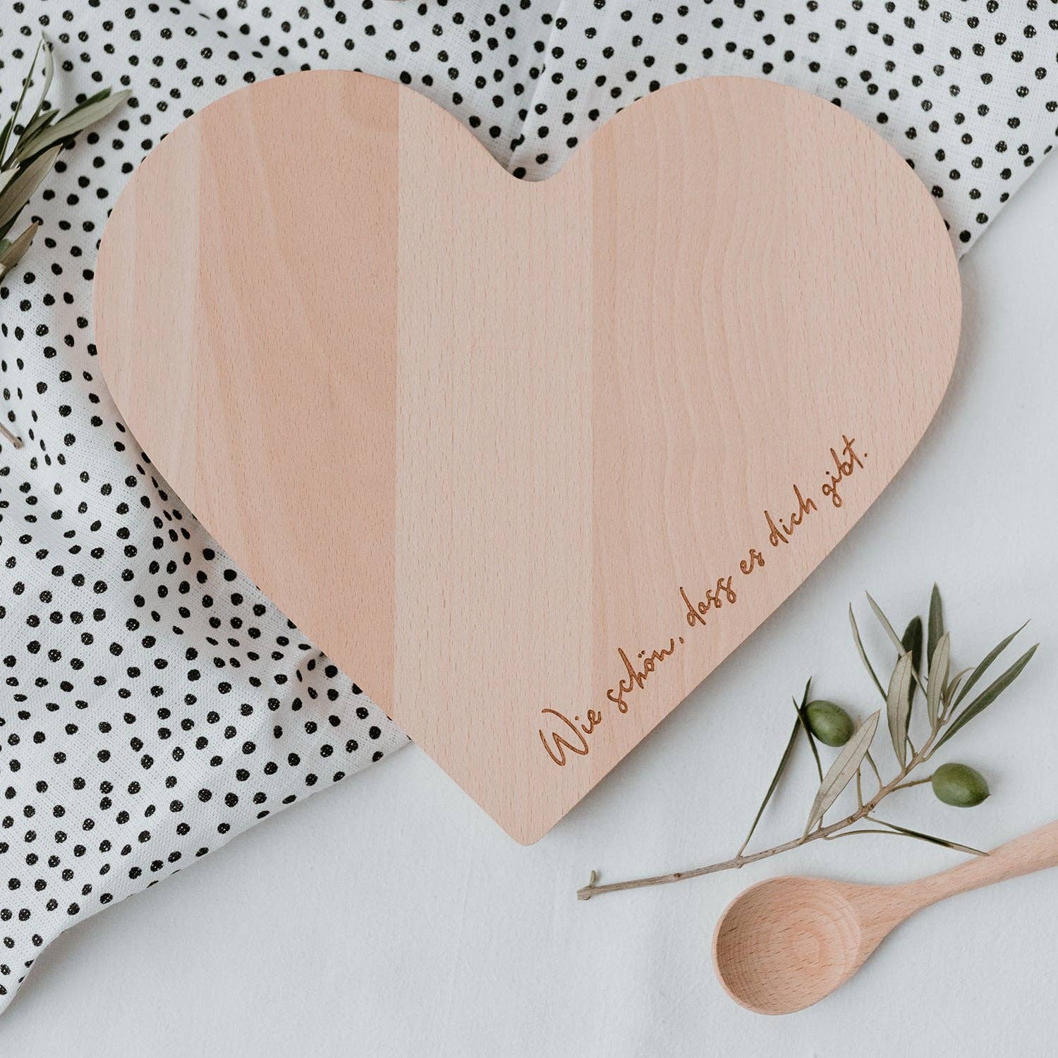 Unser Frühstücksbrettchen Herz zaubert nicht nur den Kleinsten ein Lächeln aufs Gesicht! Hier gibt es Konfetti-Laune am Morgen für die ganze Familie! Endlich sind sie wieder da: Unsere beliebten Frühstücks- und Schneidebrettchen! Unsere neuen Brettchen lassen Dich glücklich und zufrieden in den neuen Tag starten. Unser Frühstücksbrettchen Herz ist aus Buchen-Leimholz gefertigt und starke 1,5 cm dick. Die Größe unseres Frühstücksbrettchen Herz beträgt 24 x 21 cm und lässt Dir allerlei Platz zum Schneiden oder Servieren. Für die Detailverliebten unter euch wurde auf der Vorderseite der Spruch "Wie schön, dass es dich gibt" per Laser eingraviert. Das Frühstücksbrettchen Herz hat auf der Rückseite ein kleines Eulenschnitt-Logo.