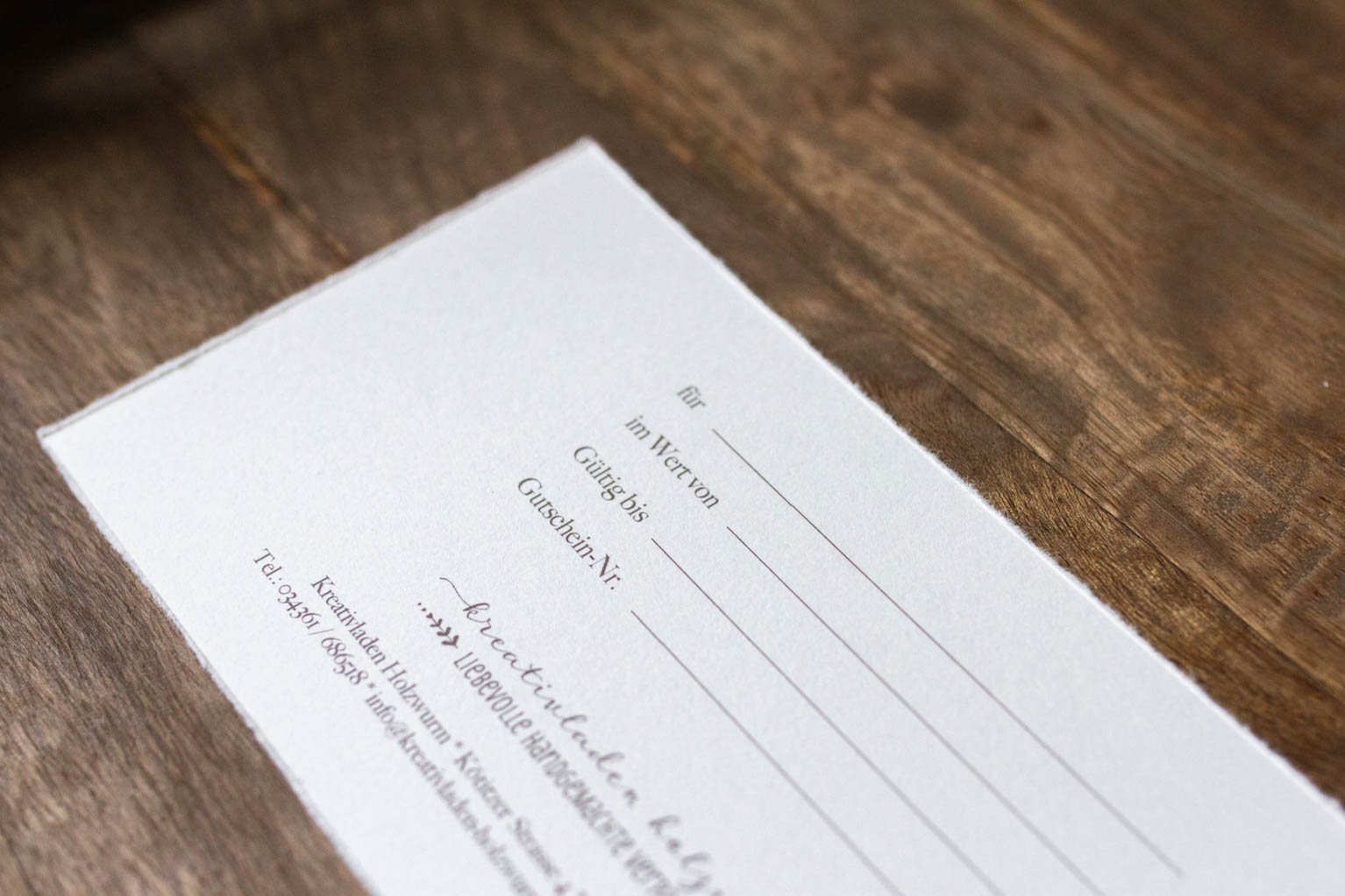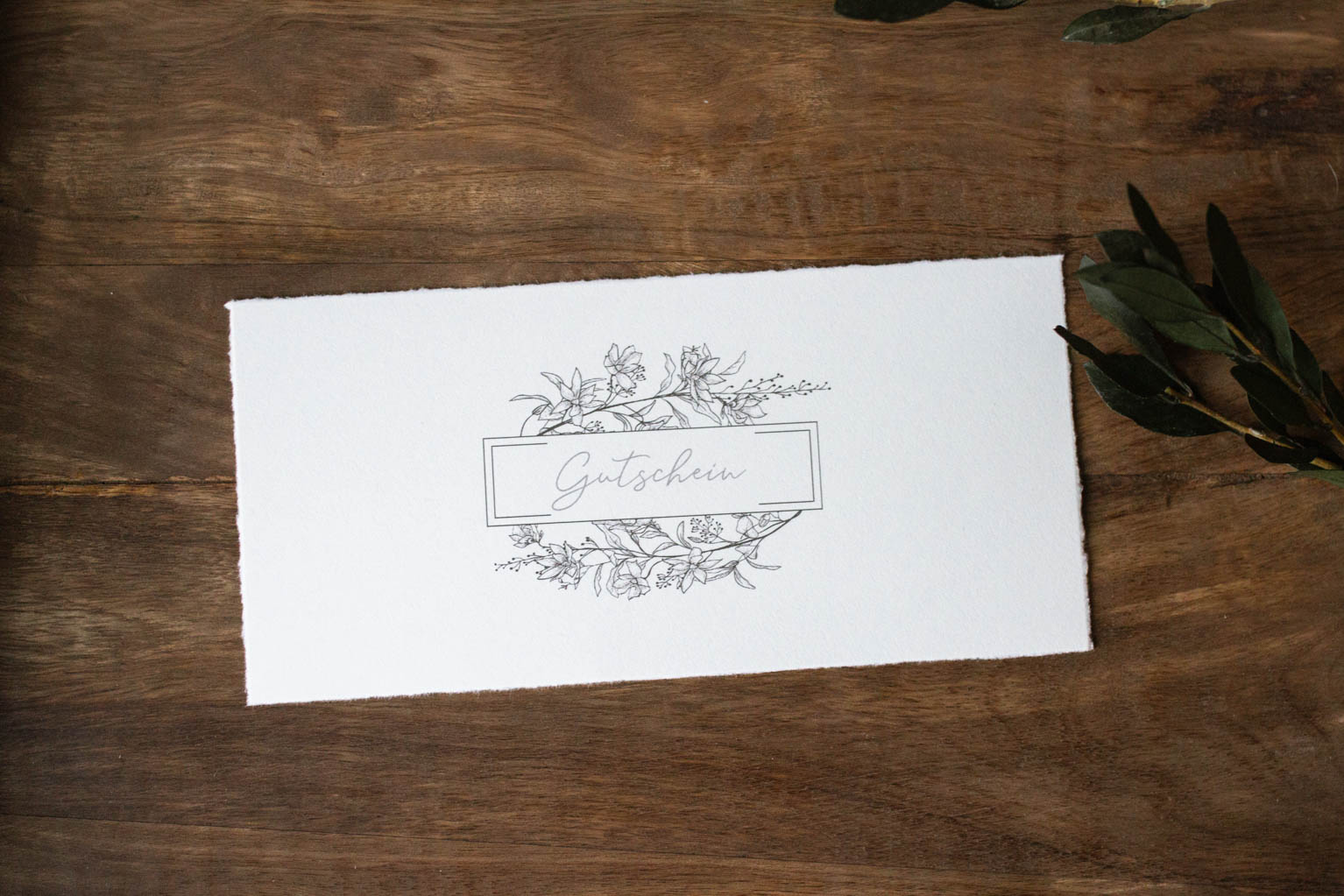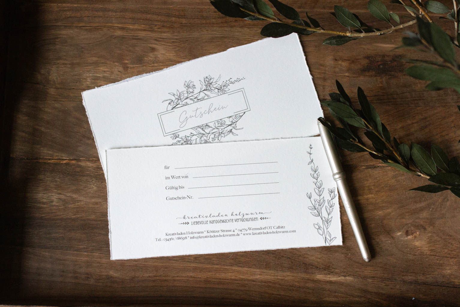Büttenpapier altweiß mit echtem handegrissenen Büttenrand, somit können die Karten unterschiedlich groß sein
