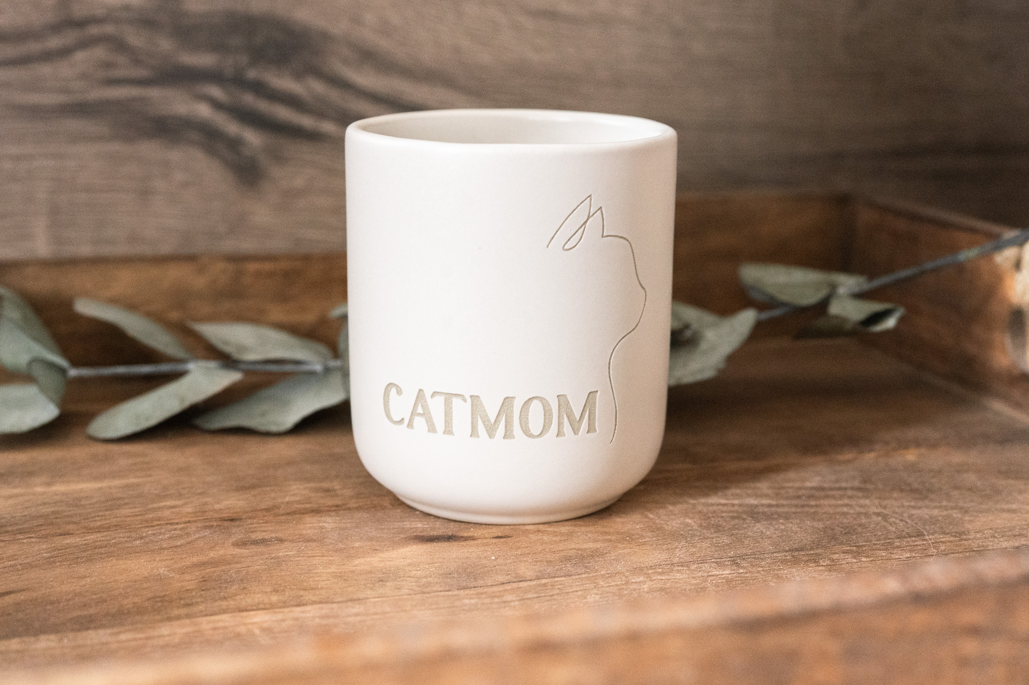 Minimalistisch, modern und perfekt für Katzenmenschen: Der matte Keramikbecher (ca. 280 ml) mit Gravur „Catmom“ oder „Catdad“ und einer feinen Katzen-Silhouette. Die dauerhafte Gravur wirkt edel und bleibt lange schön – ideal für Kaffee, Tee und alle kleinen Pausen mit Schnurrfaktor.