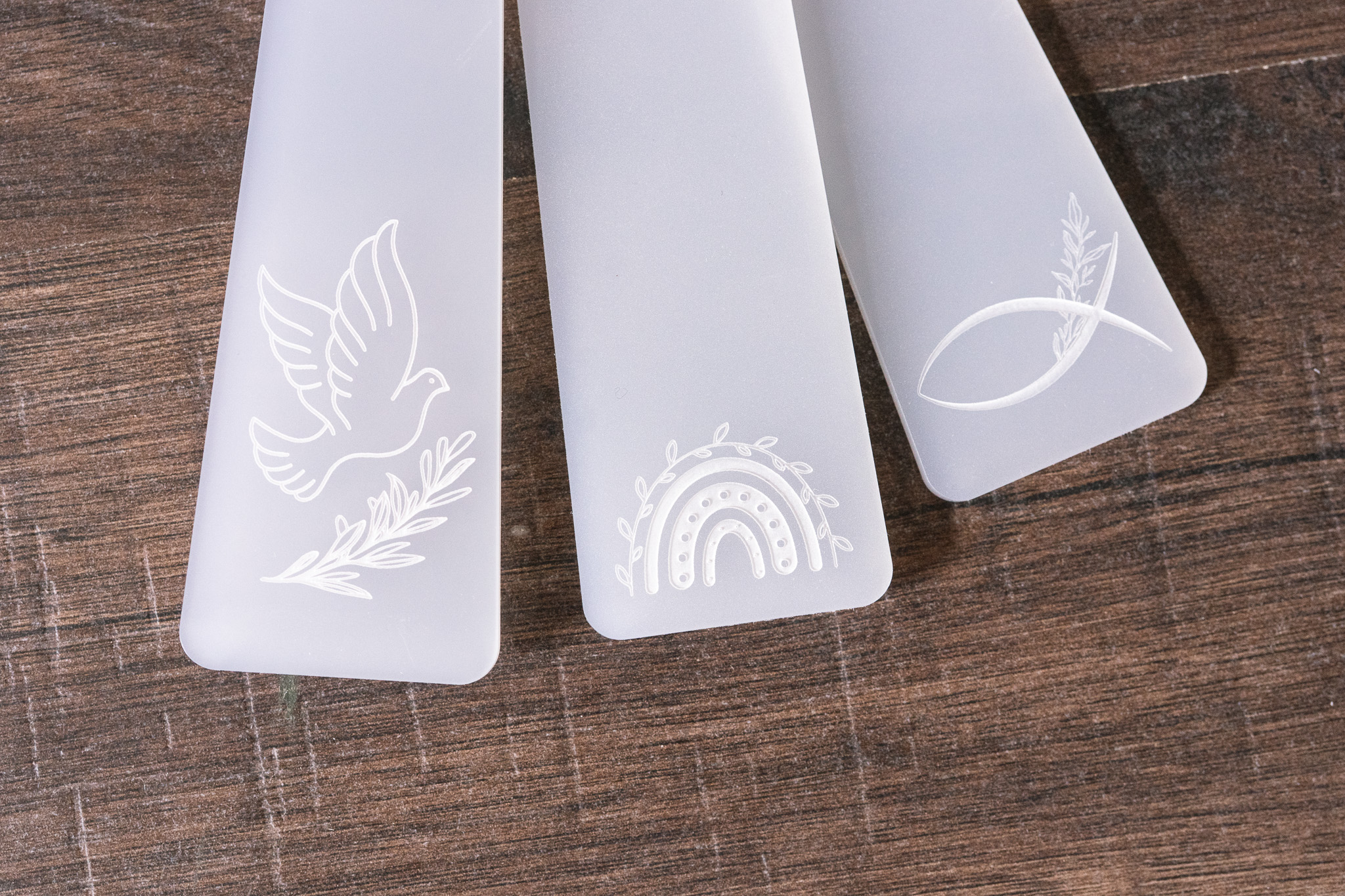 - Symbol-Auswahl: Taube, Regenbogen oder Fisch