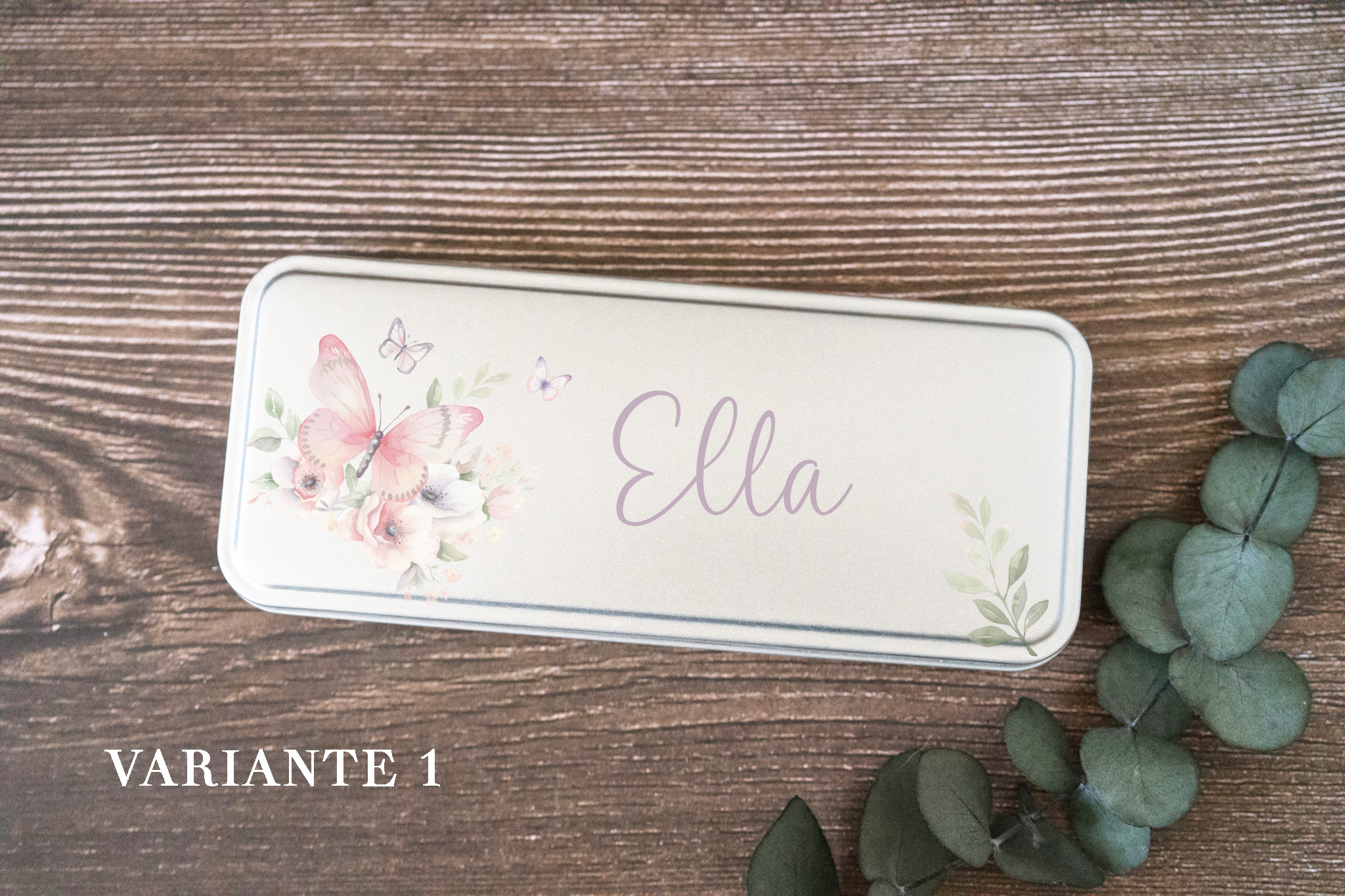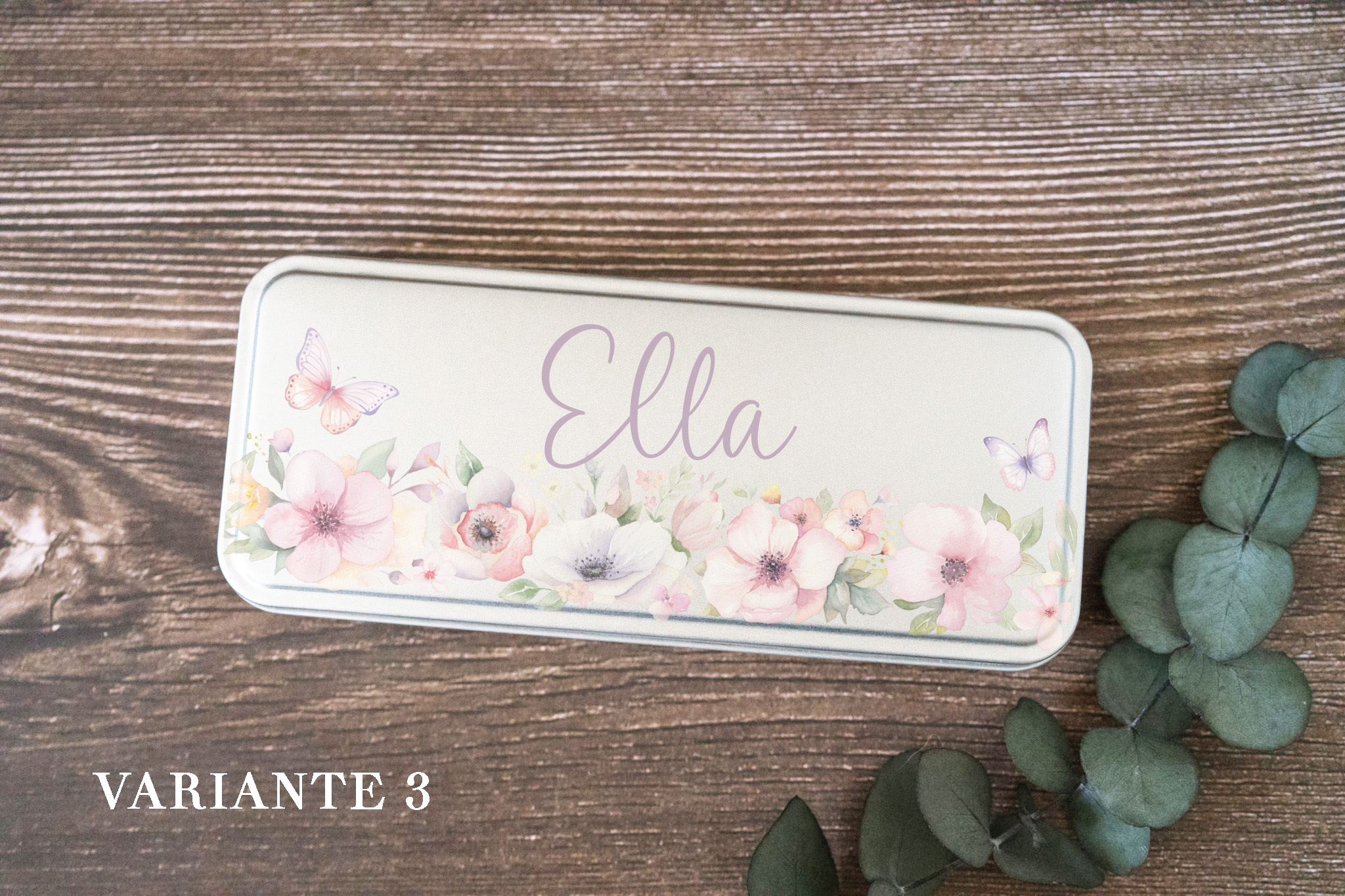 Diese Blechdose wird von uns designt sowie abgebildet bedruckt (Muster, Schriftart ect.)