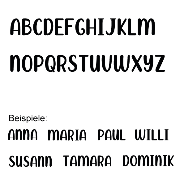 Hinweis: Die Länge des Schriftzugs variiert je nach Namen und Text.