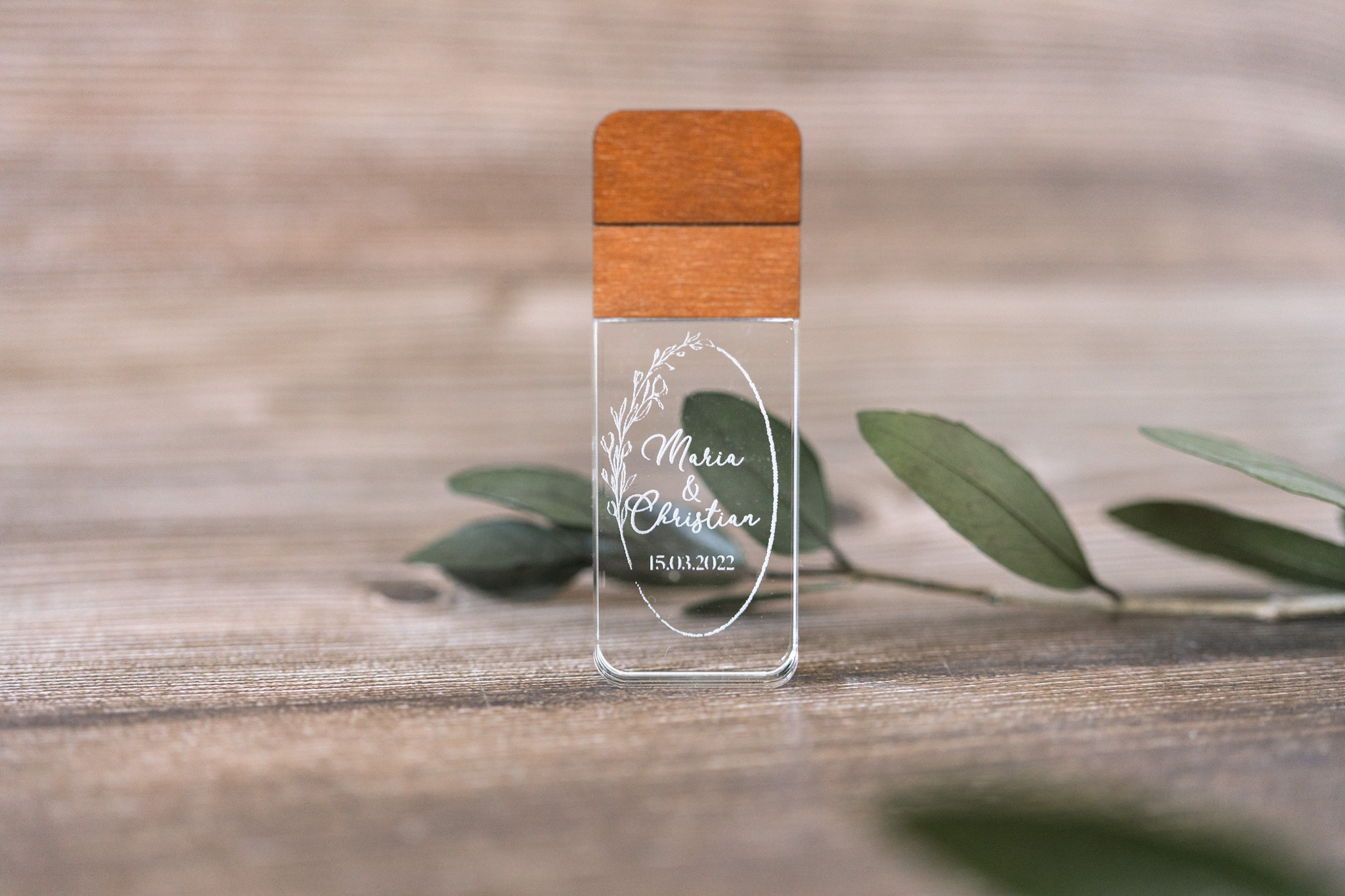 Achtung! Beim USB Stick No.05 mit Acryl geht nur eine Seite zum gravieren.