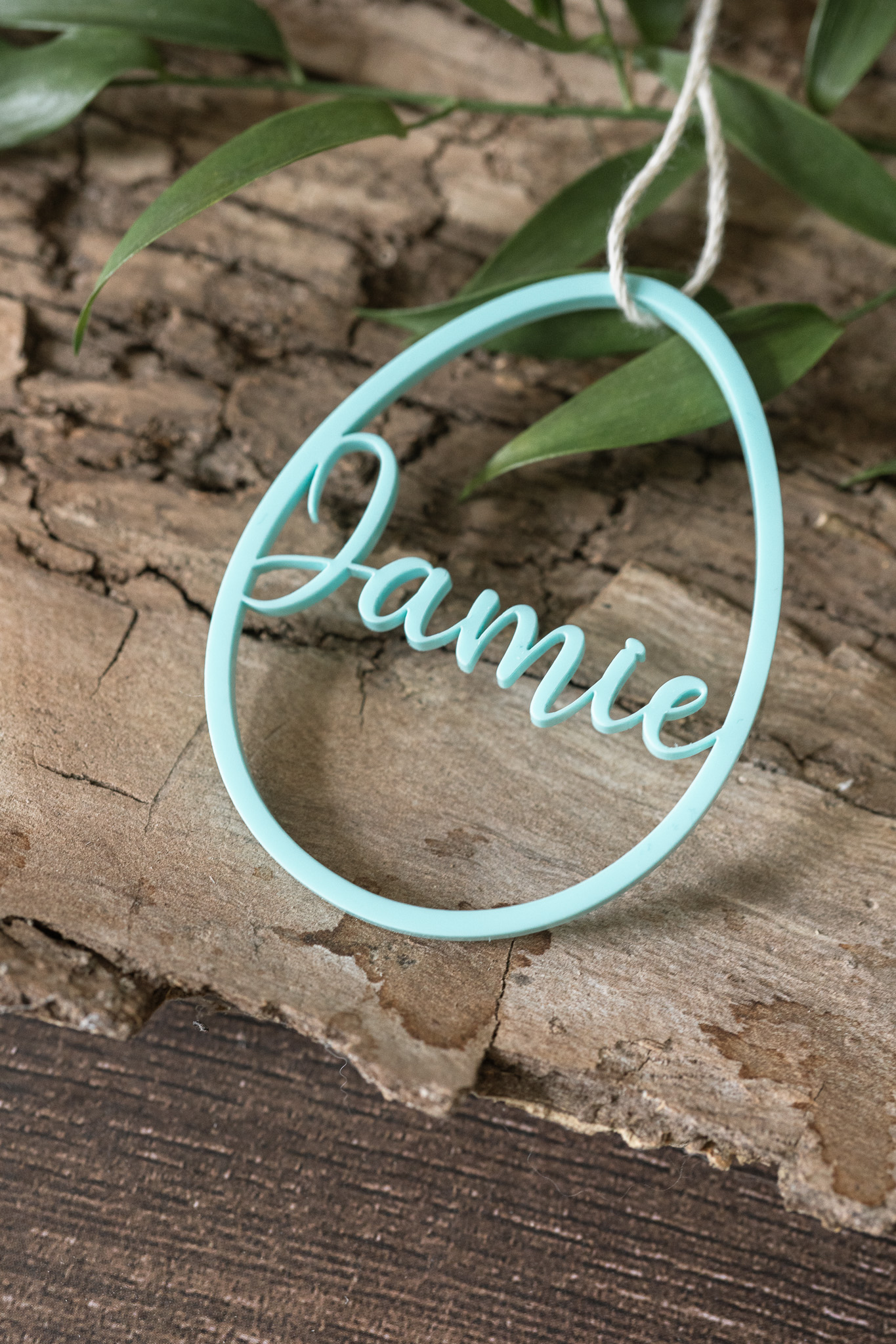 Der gewünschte Name kann aus verschiedenen Acrylfarben ausgewählt werden. Geben Sie einfach Ihren Wunschnamen und Ihre Farbpräferenz bei der Bestellung an.
