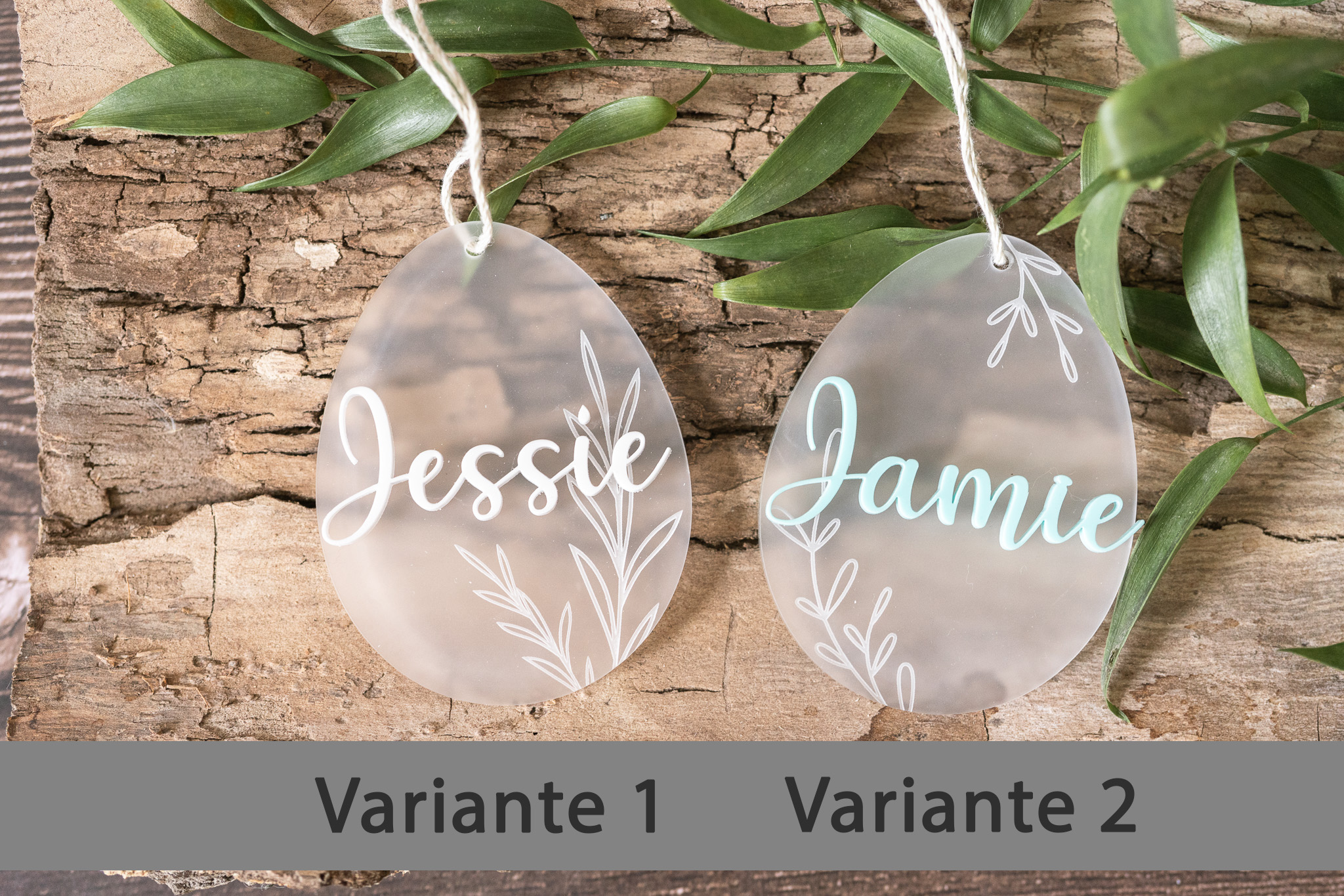 Der gewünschte Name kann aus verschiedenen Acrylfarben ausgewählt werden und wird dann auf das gravierte Ei aufgebracht, wodurch ein atemberaubender 3D-Effekt entsteht. Geben Sie einfach Ihren Wunschnamen und Ihre Farbpräferenz bei der Bestellung an.
