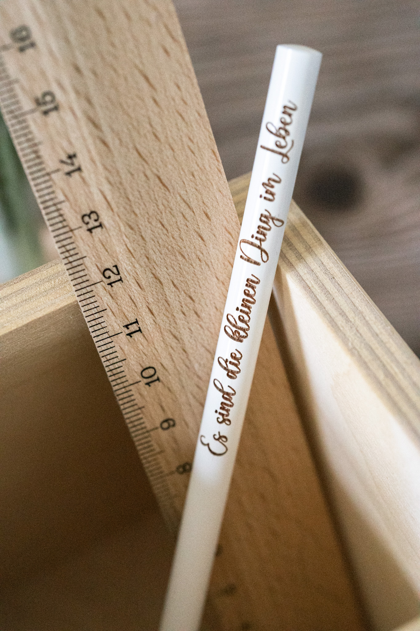Bleistift mit Gravur. In verschiedenen Farben erhältlich. Härtegrad HB
