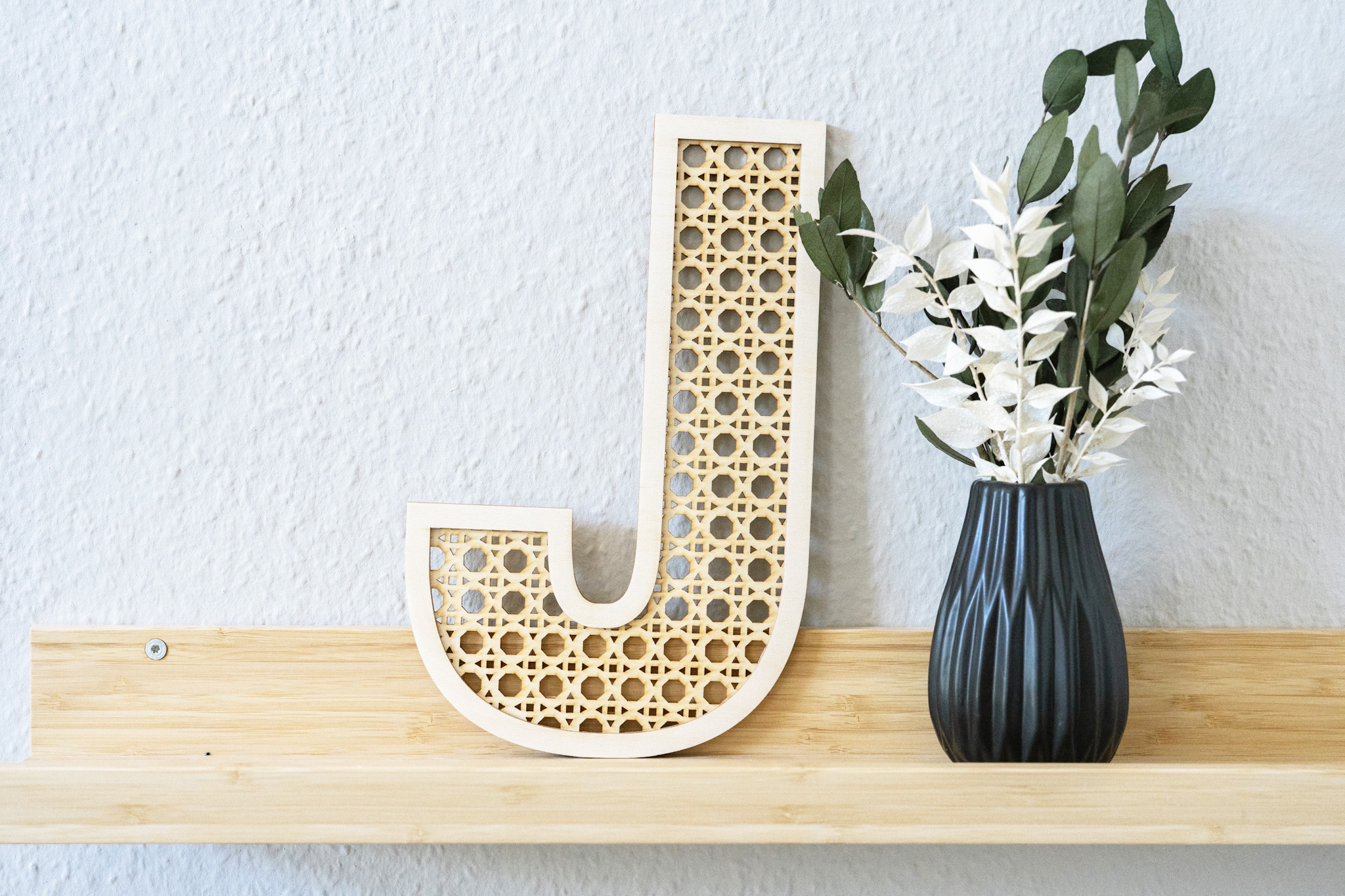 Ein Buchstabe in Rattanoptik (ohne weitere Dekoration).