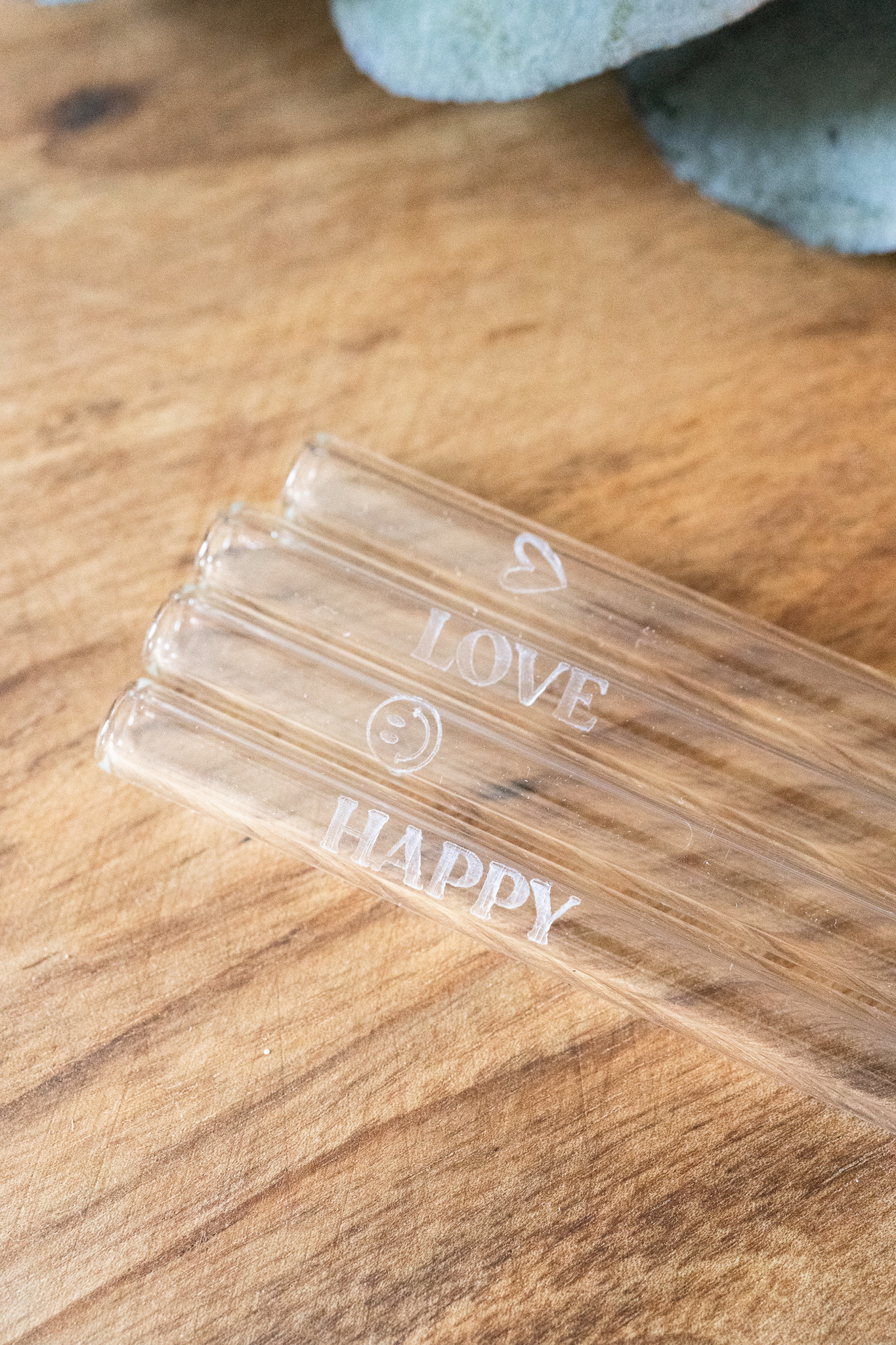 Lieferumfang: 4 Strohhalme aus Glas und 1 Reinigungsbürste.