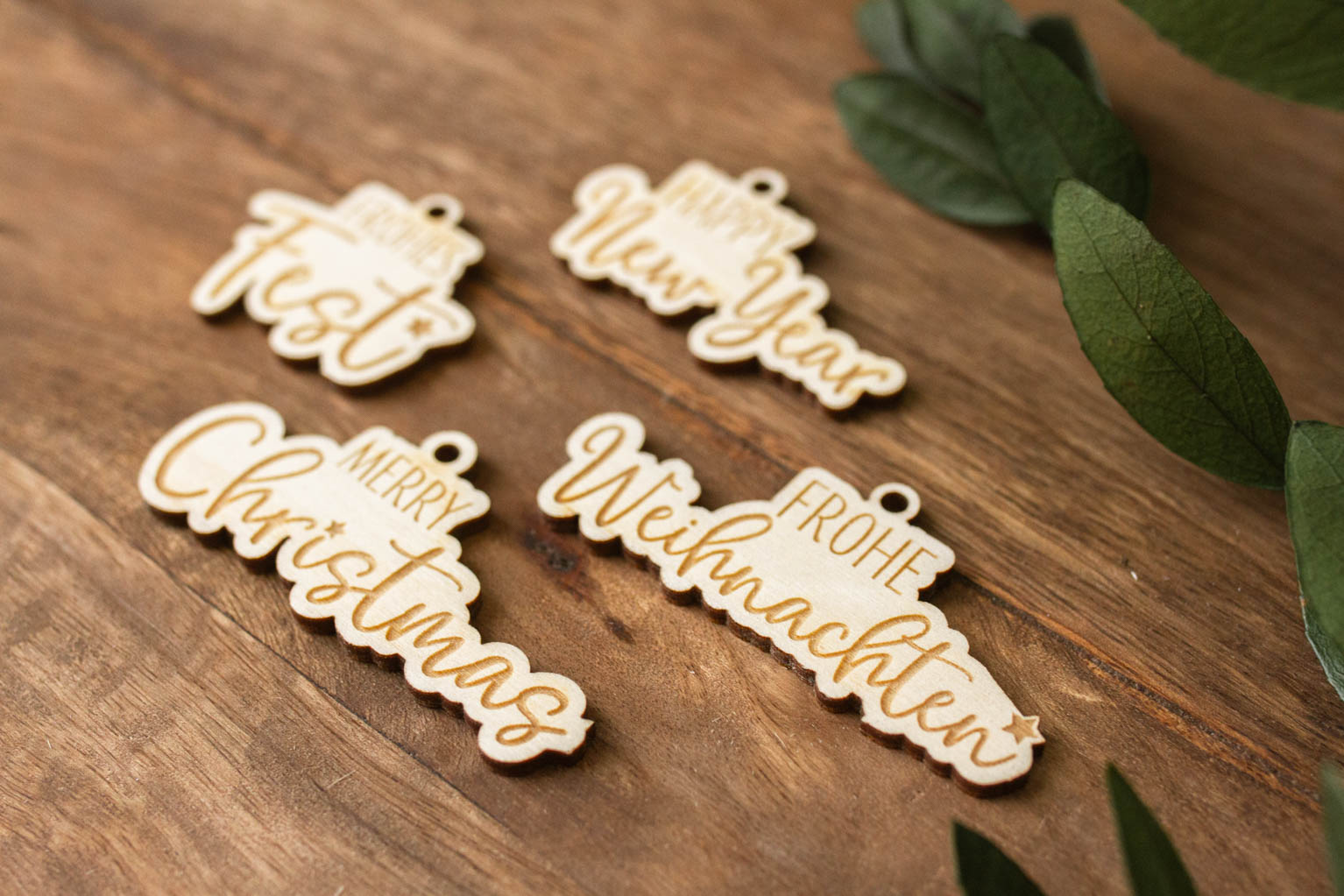Wundervolle Holzanhänger zum dekorieren von Verpackungen. Diese Holzanhänger werden aus Buchensperrholz angefertigen und können mit ein Band angebracht werden. Bänder als Meterware gibt es auch