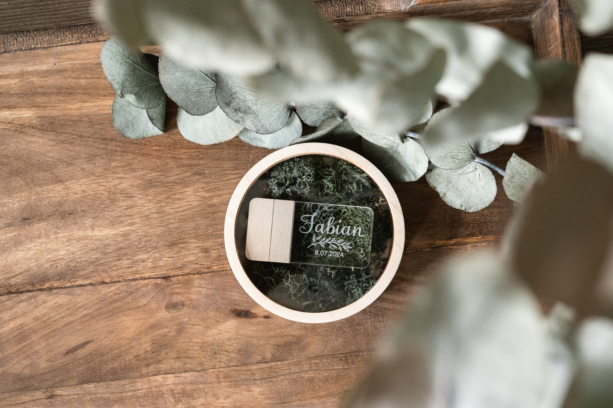 Holzbox No.116 Runde Holzbox mit Acryl-Deckel – für USB-Stick oder Trauringe