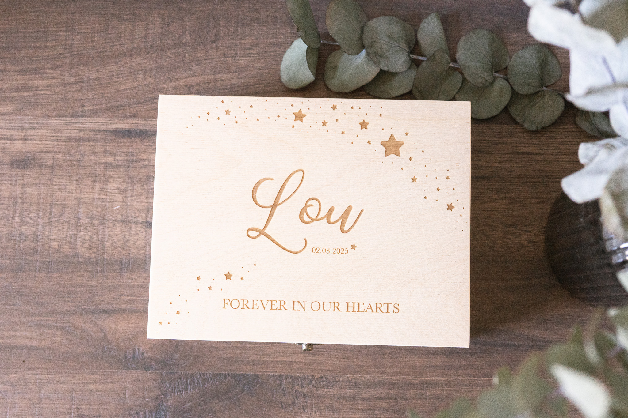 Erinnerungsbox für Sternenkind – personalisierte Holzbox mit Gravur