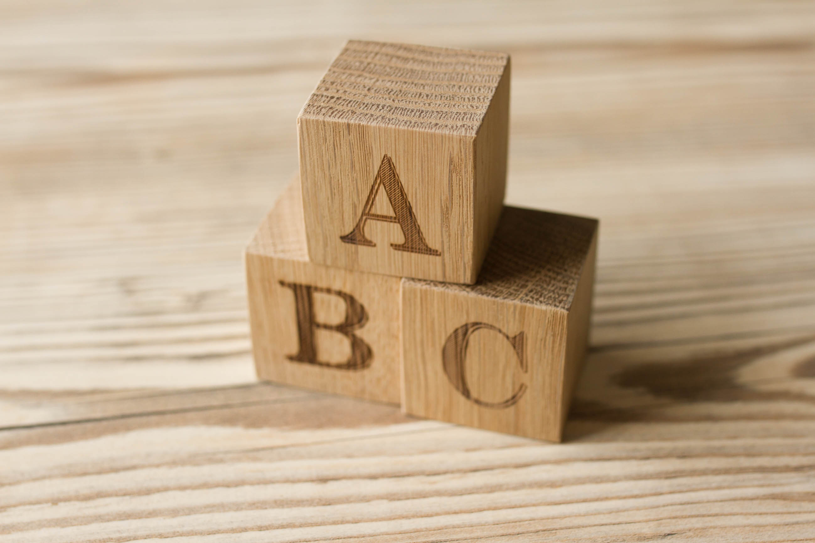 Holzwürfel aus Eichenholz mit Gravur