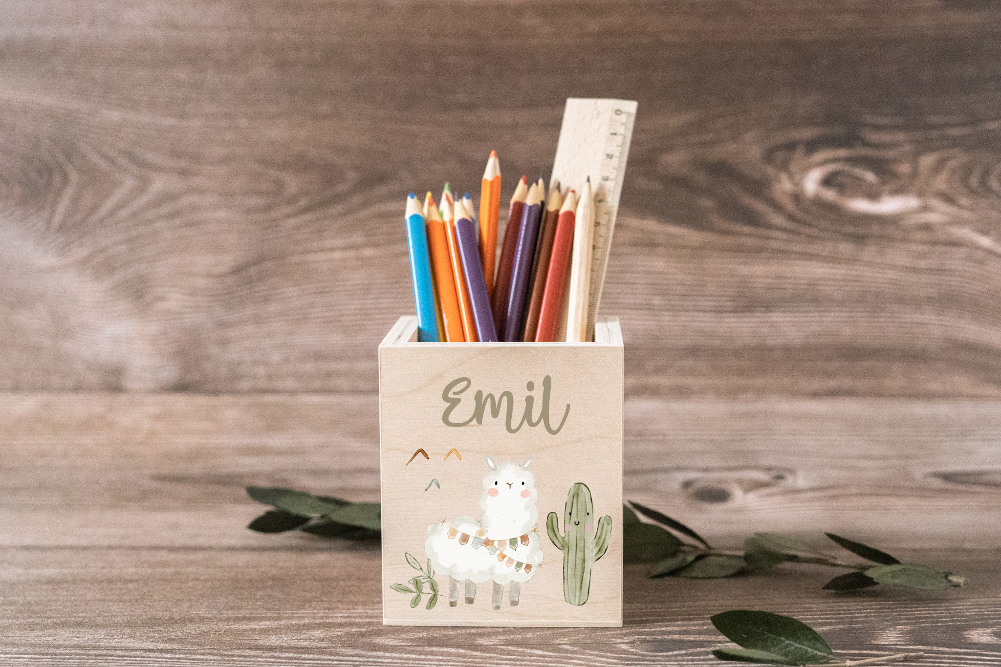 Dieser schöner Stiftehalter darf auf kein Schreibtisch fehlen. Dieser wird von uns handgefertigt und wird wie abgebildet mit UV Druck bedruckt (Muster, Schriftart ect.)
