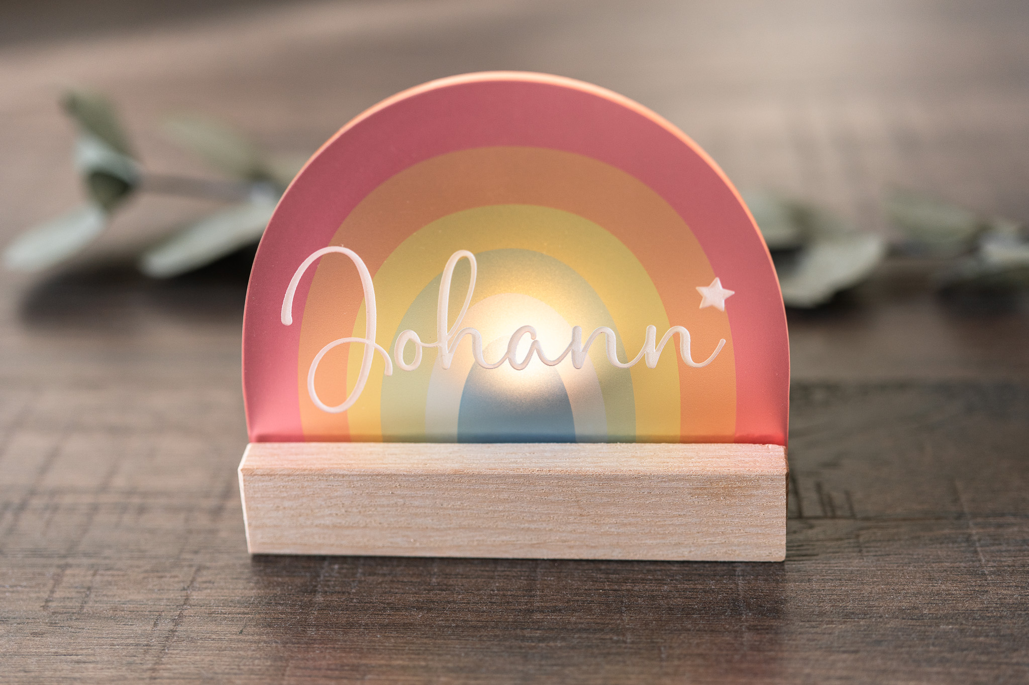 Personaliserter Teelichthalter „Regenbogen“ für Sternenkinder