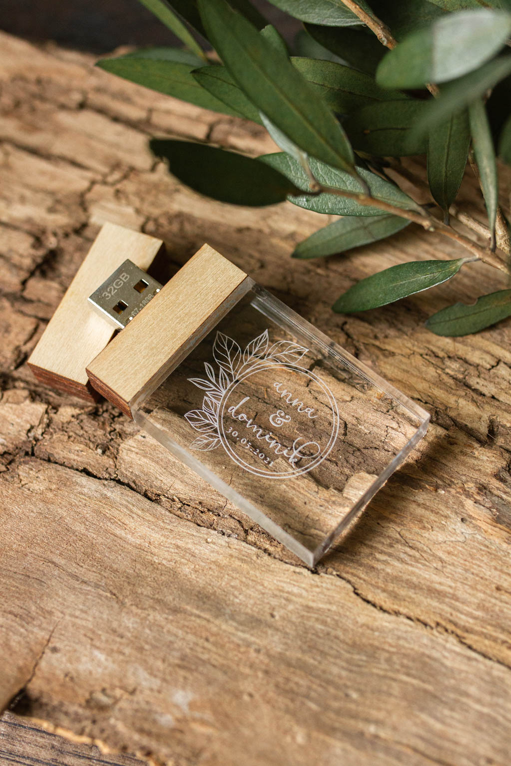 Diese handgemachte USB Sticks werden aus Birkenholz bzw. Acryl angefertigt. Den USB Stick gibt es in drei Speichergrößen. Der USB Stick wird so wie abgebildet mit Namen und Datum graviert. Auf der Rückseite ist es möglich mit Ihrem Logo zu personalisieren! Achtung, bei USB Stick No.02 und No.05 mit Acryl geht das nicht. Bitte laden Sie dafür hier die gewünschte Datei hoch. Das sind Naturprodukt, somit ist die Farbe und Maserung je USB Stick unterschiedlich.