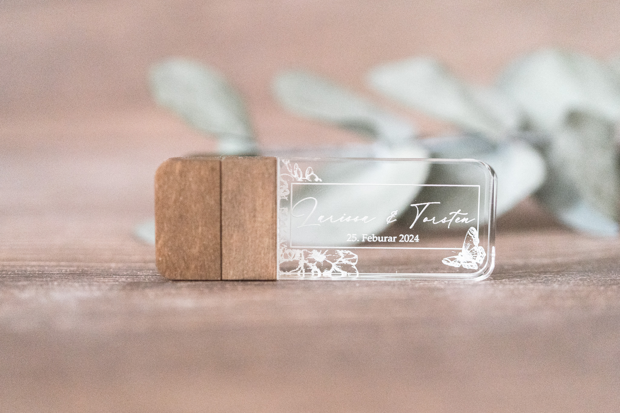 Achtung! Beim USB Stick No.05 mit Acryl geht nur eine Seite zum gravieren.