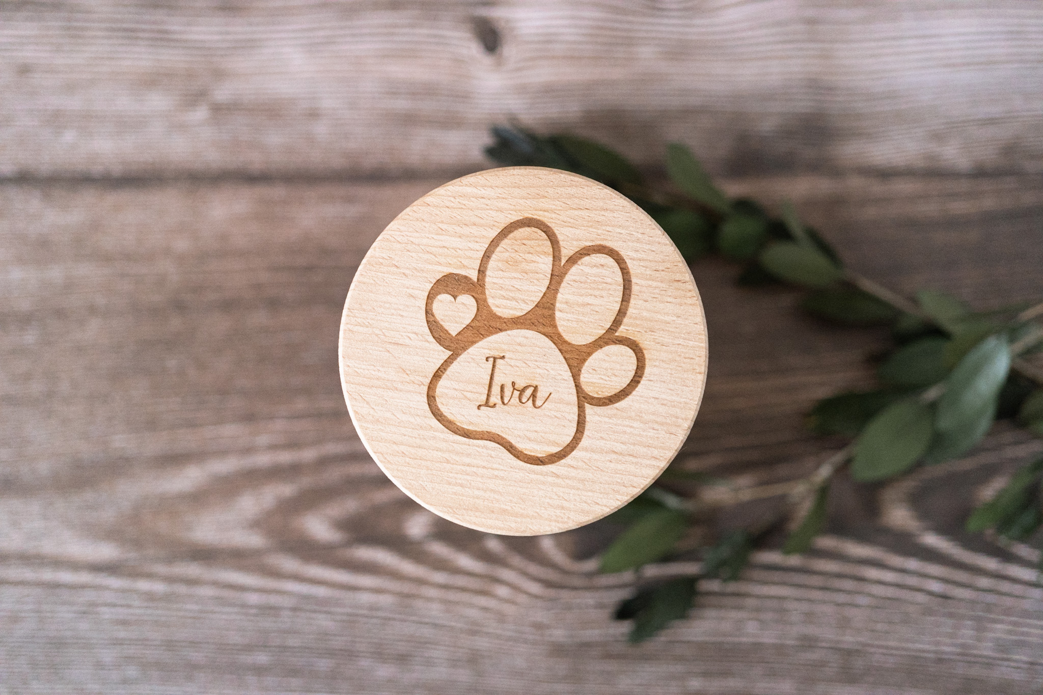Aufbewahrungsglas für die Fellnasen und Ihre Leckerlies. Dieses Vorratsglas wird wie abgebildt graviert, mit Motiv und Schriftart.